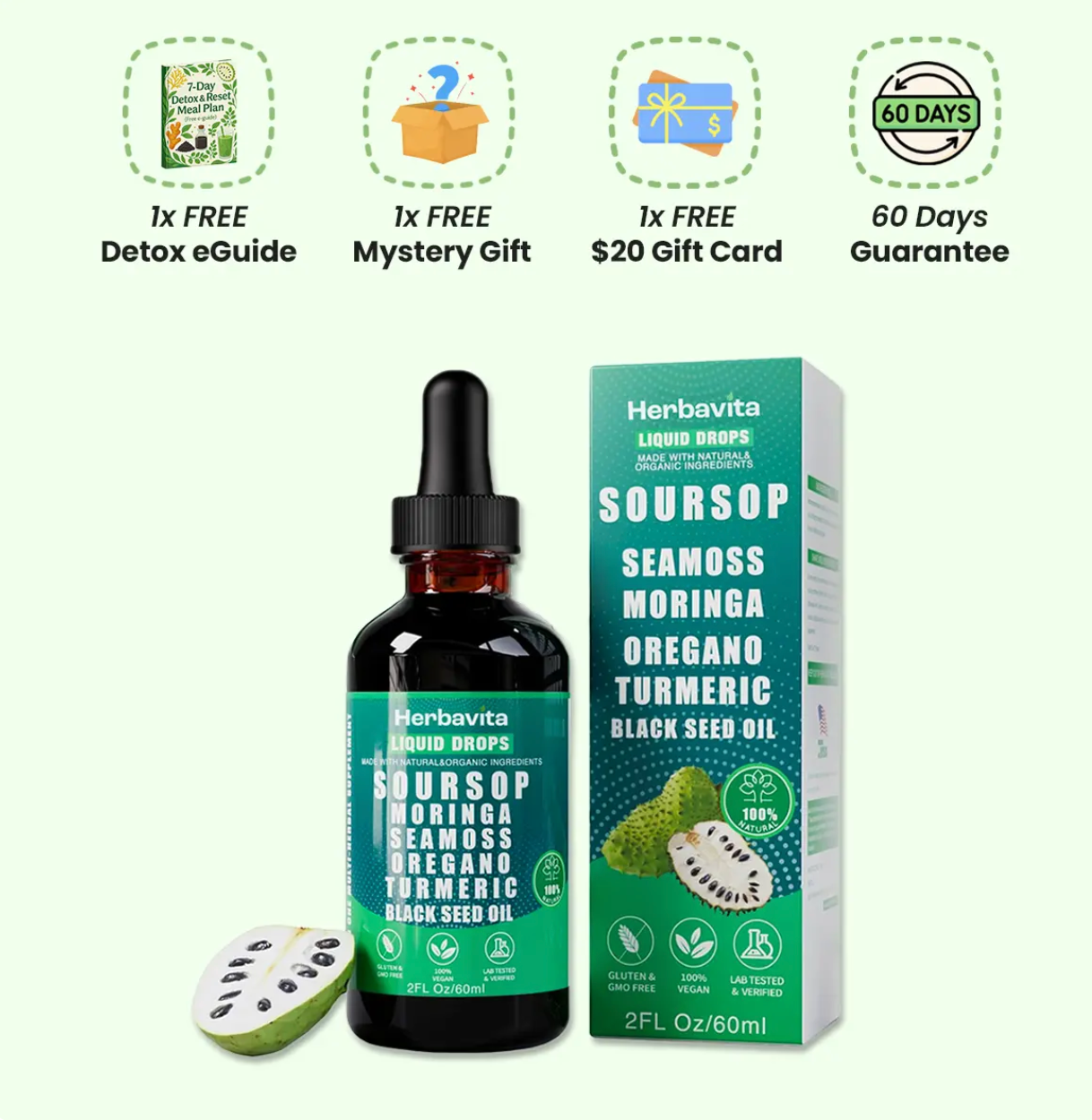 Tienes 2 meses para usar las Gotas de Extracto de Guanábana 10 en 1 y disfrutar de sus beneficios. Si funcionan como se anuncian, puedes conservarlas y disfrutar del apoyo integral para la salud que ofrecen. Pero si por alguna razón no estás satisfecho con tu compra o crees que existen mejores soluciones…