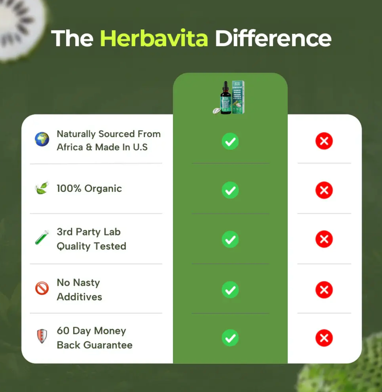 La guanábana es un excelente comienzo, pero nuestra fórmula 10 en 1 lleva tu bienestar a otro nivel. Hemos potenciado la guanábana añadiendo nueve potentes ingredientes naturales, como la ashwagandha para aliviar el estrés, la cúrcuma para calmar la inflamación y vitaminas esenciales para reforzar tu sistema inmunitario. Esto significa que recibirás un apoyo verdaderamente completo para tener más energía, una mente más clara y un cuerpo más fuerte, haciendo mucho más que la guanábana sola. ¿Por qué conformarte con menos cuando puedes experimentar este refuerzo para todo el cuerpo y sentirte de maravilla?